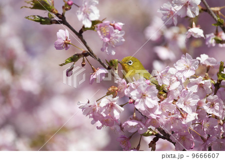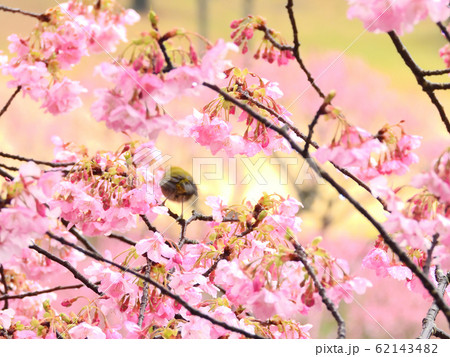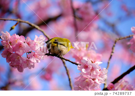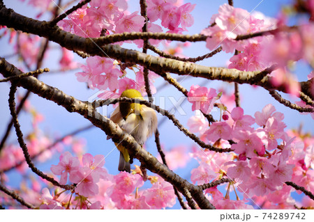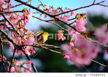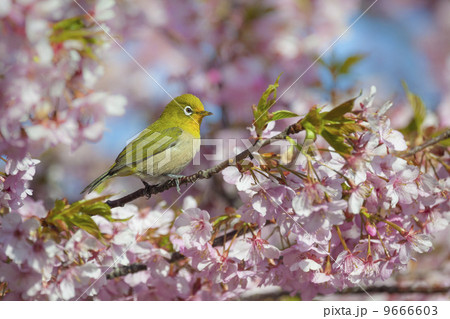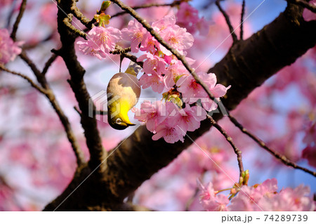 美麗的川津櫻花和日本白眼的後視圖