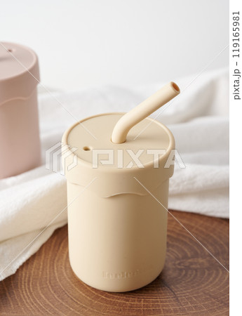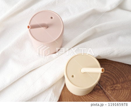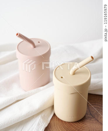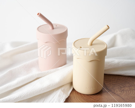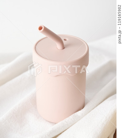 兒童水杯簡約北歐粉紅杯子吸管硅膠毛巾桌子上簡單