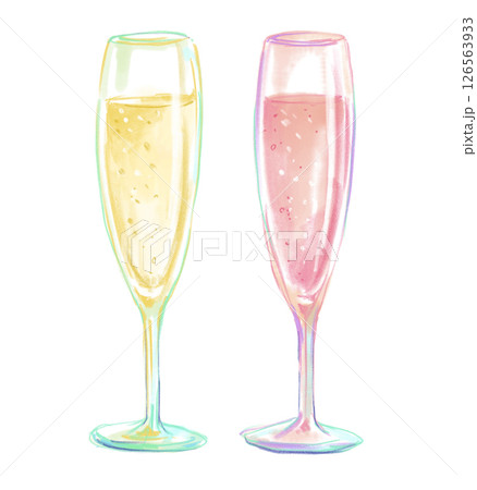 一杯清爽可口的透明香檳和一副眼鏡的手繪水彩插圖