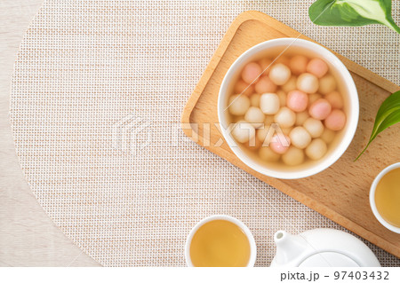 Tangyuan (Chinese sweet dumpling), Glutinous rice ball in syrup, Dessert celebrated in mid autumn lantern festival or new year