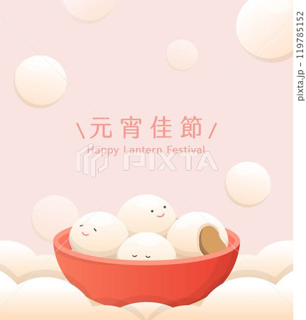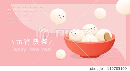 粉紅色的元宵節或新年海報,一碗湯圓,中國傳統糯米食物