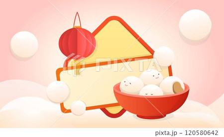 燈籠與糯米湯圓的海報或廣告,用於中國新年或元宵節的框架模板