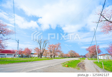 福島縣豬苗代町,春天的櫻花樹排,觀音寺川櫻花盛開