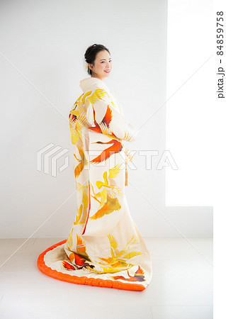 Asian pretty young woman sitting on pink pastel background. She smiling and happy .She hold shopping bags. she nice-looking lovely attractive shine .
