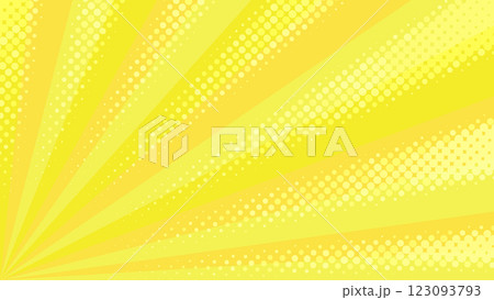 黃色漫畫旭日形首飾、集中線背景、向量插圖