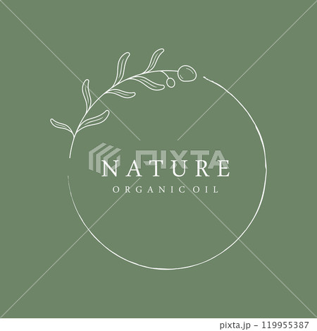 Botanical logo template Hand drawn natural olive leaf and fruit .Herbal, olive oil,cosmetic or beauty.