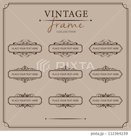 Set of vintage horizontal frame. Ornamental label frame. Graphic vector element for design of catalogs and brochures of cafes, boutiques.