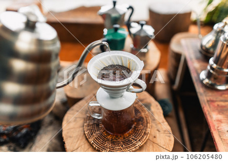 Coffee from a coffee maker Coffee pouring into a cup from a home coffee maker