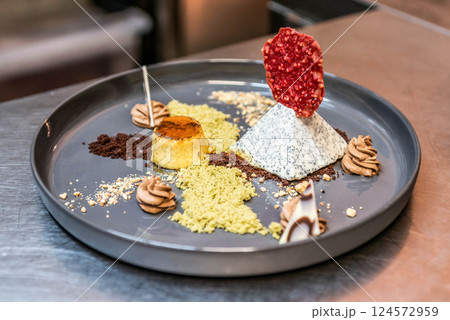 Haute cuisine gourmet and deluxe dessert fine sugar sweet art for coffee