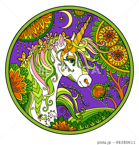 Doodle floral pattern in black and white. Page for coloring book: very interesting and relaxing job for children and adults. Zentangle drawing. Flower carpet in magic garden.