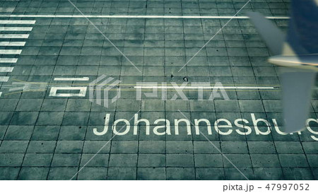 Aerial view of an airplane arriving to Johannesburg airport. Travel to South Africa 3D rendering