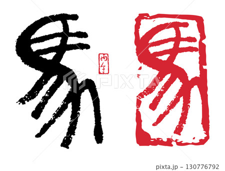 帶有“馬”字的馬印章風格插圖(圓圈)新年賀卡材料