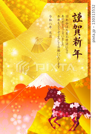 富士山與奔馬剪影,2026年賀年卡(限祝賀訊息)