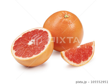 南非葡萄柚(紅寶石)的橫截面白色背景白色背景