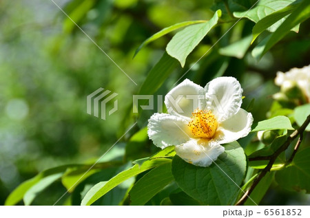 初夏盛開的白色夏山茶