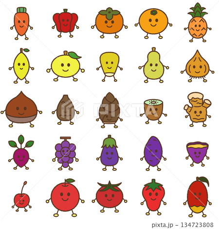 貼紙風格簡單蔬菜、水果和蘑菇插圖圖示集