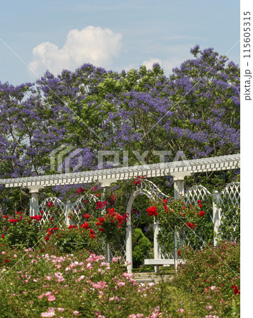 玫瑰園與藍花楹花