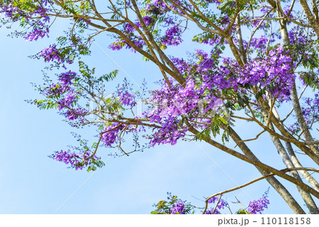 Branch of Jacaranda tree growing against blue sky in Da Lat Vietnam in spring