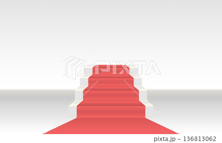 Red carpet on the round podium with steps