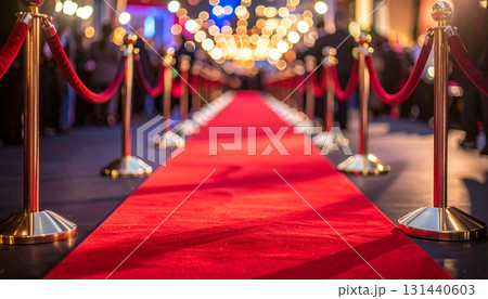Glamorous red carpet event entrance with spotlight