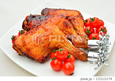 注意)背景畫布上有“黑點”。購買時請注意。三個國內烤雞(聖誕節)。