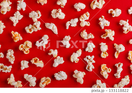 box with popcorn on a red background