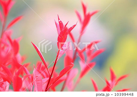 Red Tip Photinia 明亮的幼葉(櫻花背景)