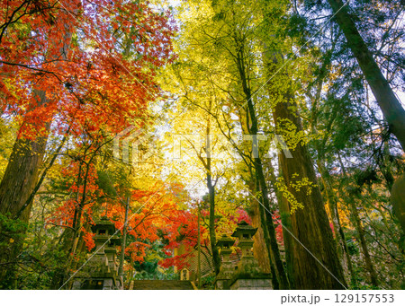 京都府龜岡市,桑山神社的鳥居被充滿活力的秋葉所包圍