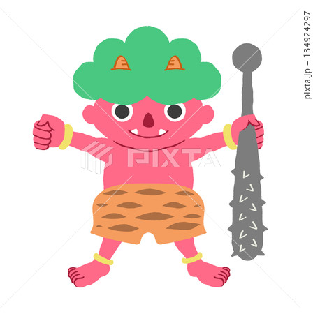 節分紅鬼角色插圖(鐵棍和虎紋褲)