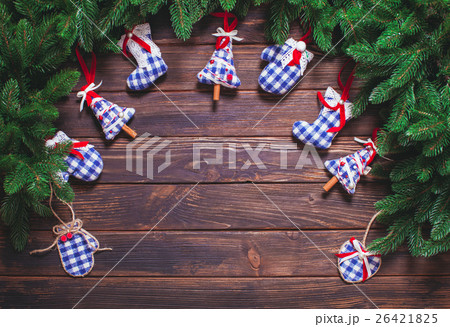 christmas decorations on wooden background