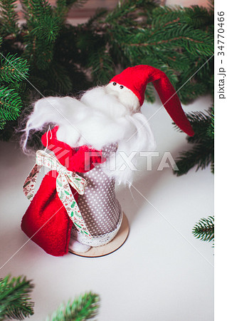 Scandinavian gnome with long beard red hat white knit background step by step handmade tutorial. Homemade DIY