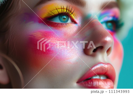 Artistic Makeup on Woman's Face with Vivid Colors