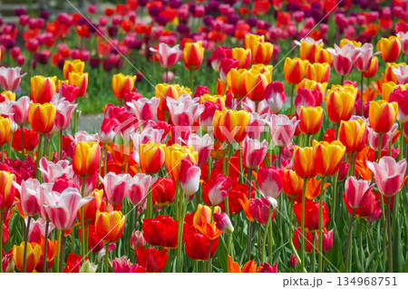 多彩的鬱金香場
