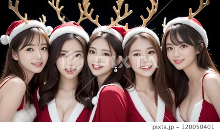 五位戴著馴鹿角帽的婦女