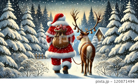 聖誕老人和馴鹿的插圖