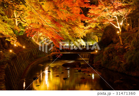 愛知瀨戶Iwayado公園的秋葉照亮