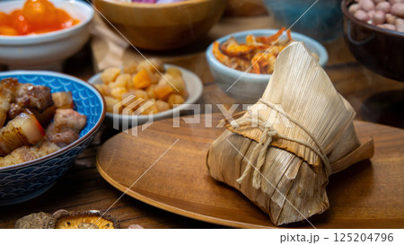 傳統台灣粽子與各式食材展示