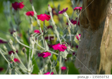 Lychnis coronaria synonym Silene coronaria in full bloom. Also known as rose campion, dusty miller, mullein-pink, bloody William, or lampflower.