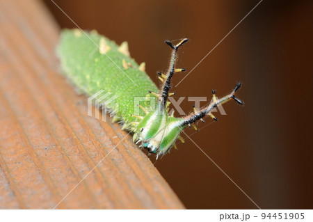 一隻燕尾蝶幼蟲在手上的圖片