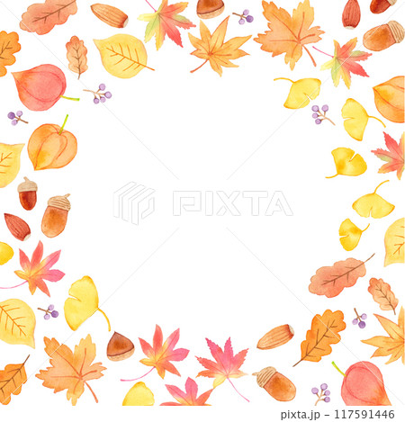 秋天的落葉和堅果水彩背景圖