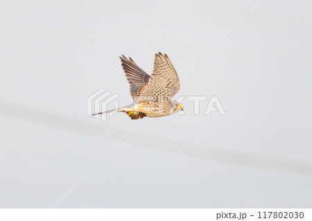 雌性紅隼飛行中的背面視圖
