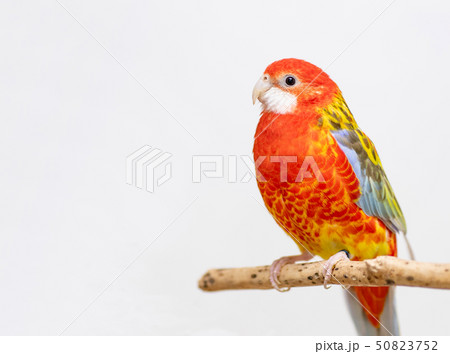 棲息在 branch_frame_line 上的猩紅色金剛鸚鵡的插圖