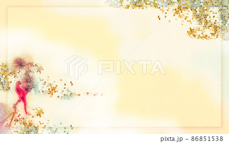 復古瓷磚雲與松樹和廣重歌川金剛鸚鵡框架背景插圖/彩色文本框