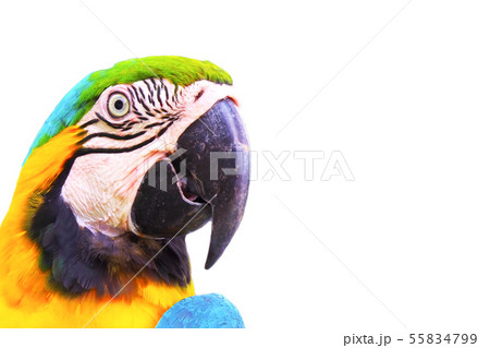 Blue and Gold Macaw parrot. Rare form Ara Ararauna. cute pets colorful birds, Beautiful nature of wildlife closeup face of a parrot is blue on the green background.