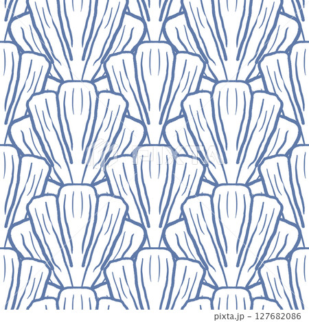 Scallop repeat pattern vector blue and white shells beach pattern coastal background