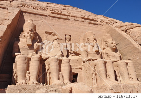 阿布辛貝神殿沐浴在清晨的陽光下