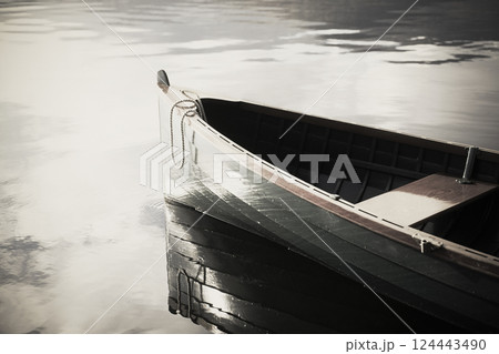 USA, NY, St. Armand, Whiteface Mountain and Lake Placid in morning mist