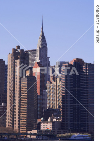 Aerial sunset with Statue of Liberty in Manhattan New York City