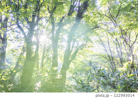 清晨的陽光透過奧大山的山毛櫸樹林