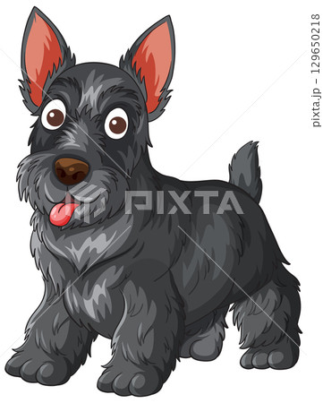 Cartoon Scottish Terrier Dog Standing with Tongue Out